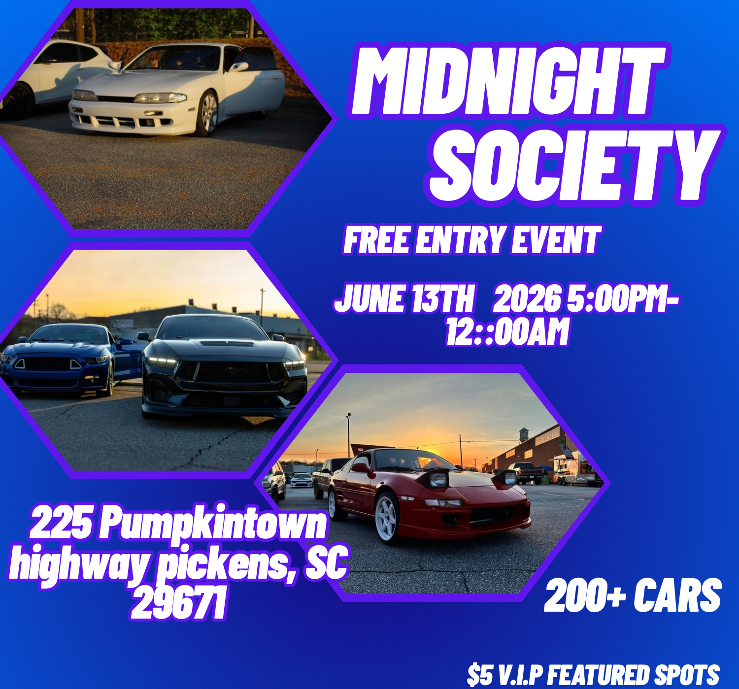 Next Event May 16th 225 Pumpkintown Highway Pickens Sc at 5:00Pm. DONT MISS OUT!!! Midnight Society Where We Do Everything!!